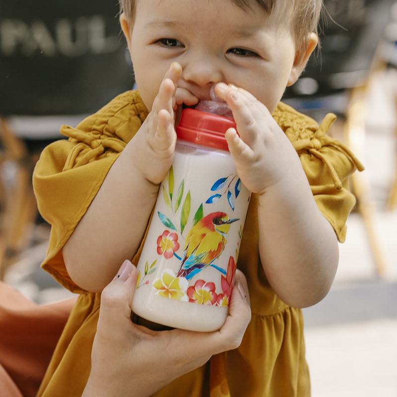 - Bērnu pudeles ar platu kaklu no izturīga polipropilēna. Nesatur BPA. Ar antikoliku silikona knupīšiem.