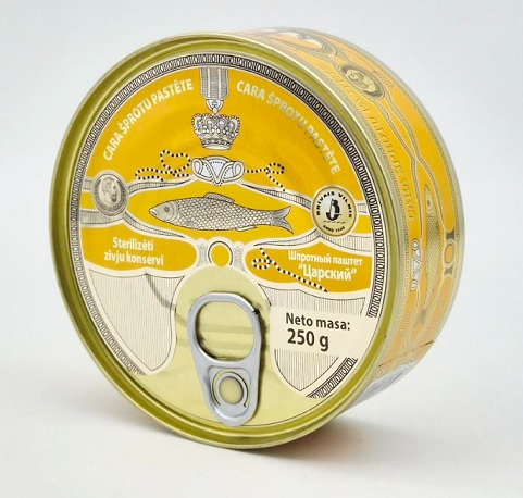 Malta zivju masa (Sprattus sprattus, Baltijas jūra) (58%), grūbas, dzeramais ūdens, rapšu eļļa, kviešu milti, pārtikas sāls, žāvēti sīpoli, garšvielas, sinepju aromatizētājs.