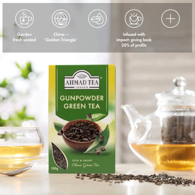 - Пачка листового зеленого чая. Для приготовления этого чая свежие листья среднего размера собираются и деликатно скручиваются в «зеленые жемчужины». Во время заваривания «жемчужины» стремительно раскрываются, создавая чистый, янтарно-зеленого цвета, напиток с легким ароматом и специфичным выраженным вкусом.Настаивать в течении 3-5 минут.