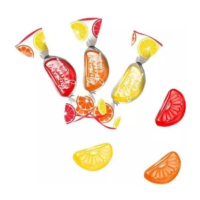 Karamele "Веселые дольки" citrons, apelsīns, greipfrūts