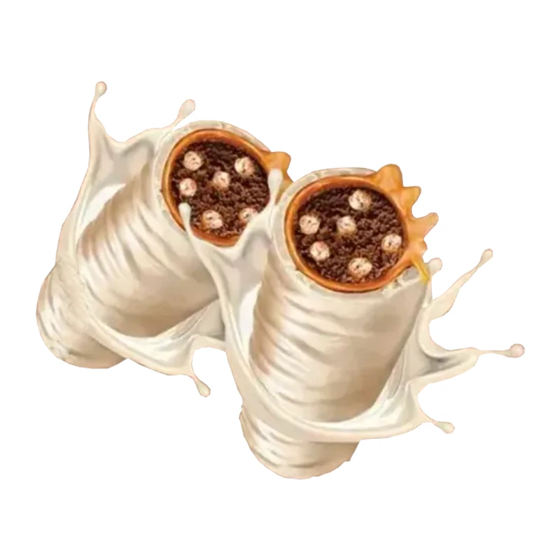 - Konfektes ar mīkstu karameli, kraukšķīgām cepumu bumbiņām un burvīgu trifeļu pildījumu. - Ar kakao no izvēlētām kakao pupiņām. - Baltā piena glazūrā. Konfektes ar fascinējošu garšu: ar mīkstu karameli un kraukšķīgām cepumu bumbiņām. Glazūra no izvēlētām kakao pupiņām. Tās ir pagatavotas no izvēlētiem produktiem, izmantojot augstas kvalitātes šokolādi un vissmalkāko pralinē pildījumu. Glazūra lieliski kūst mutē, atklājot unikālu aromātu.