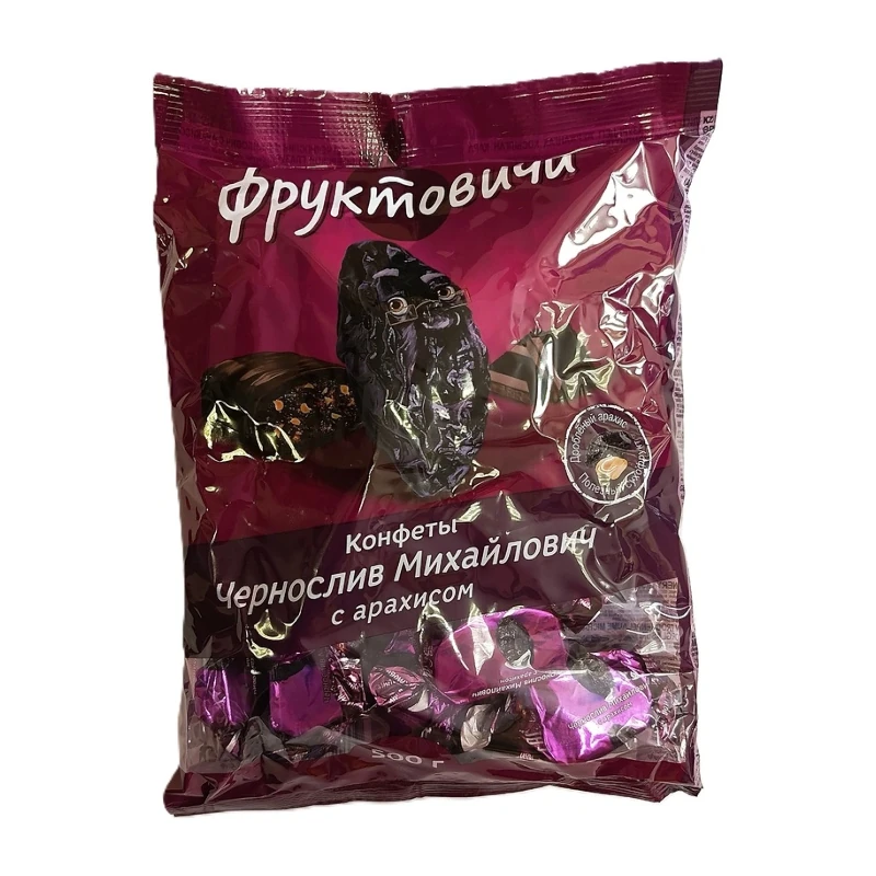 «Фруктовичи», конфеты «Чернослив Михайлович» арахисом в темной глазури