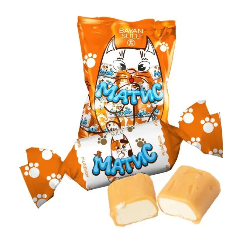 - Конфеты "Матис" от торговой марки "BAYAN SULU" – глазированные конфеты прямоугольной формы, состоящие из двух слоев: мягкой карамели и молочного пралине.