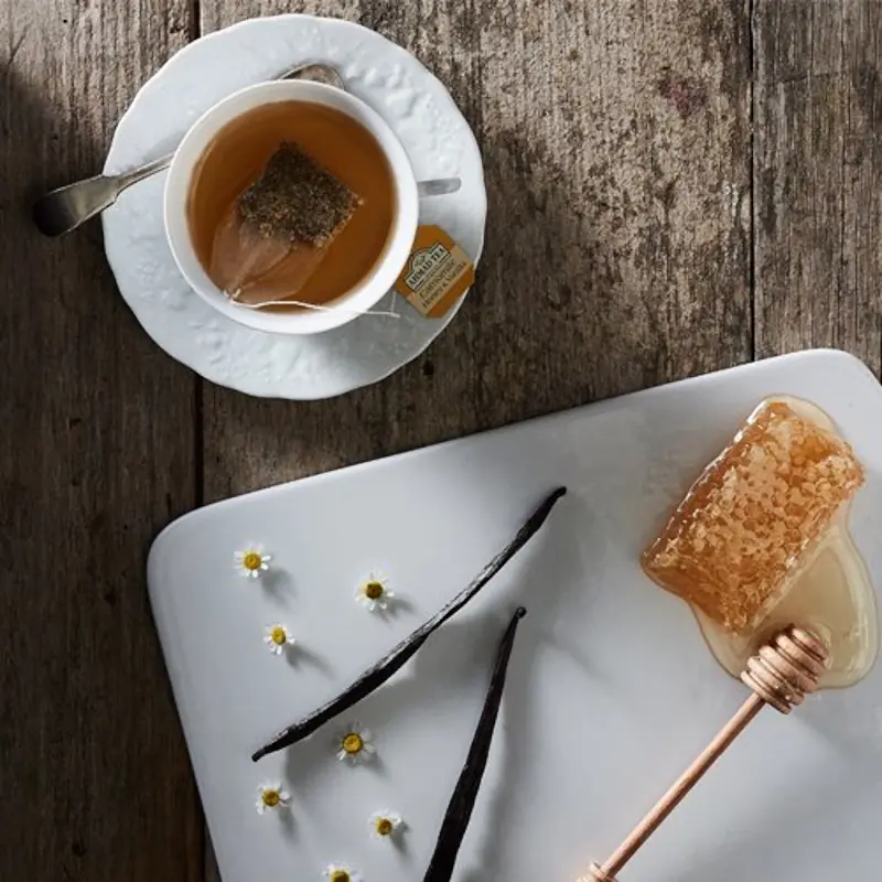 Вы также можете насладиться нашим натуральным чаем «Ромашка, мёд и ваниль» без кофеина, чтобы насладиться моментом покоя перед сном. Каждый чайный пакетик индивидуально упакован в фольгу, чтобы вы могли наслаждаться свежестью травяного чая в любое время.