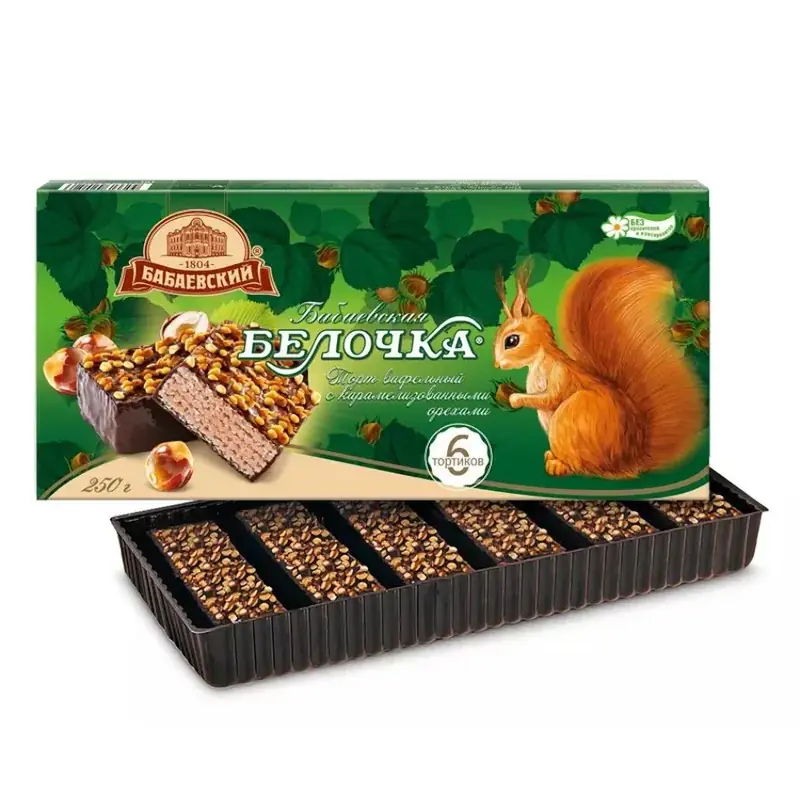 "Бабаевская Белочка" "Babaevskaja Vāverīte" vafeļu torte ar riekstiem dāvanu kastītē