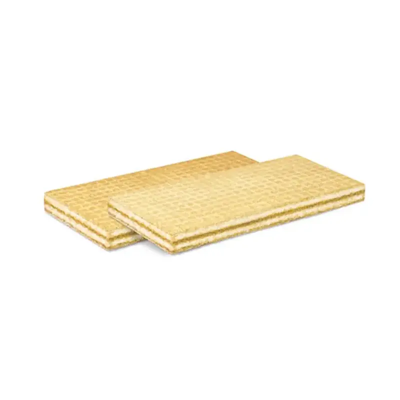 - Trīs vafeļu plākšņu kārtas un divas piena produktu pildījuma kārtas ar vaniļas garšu.