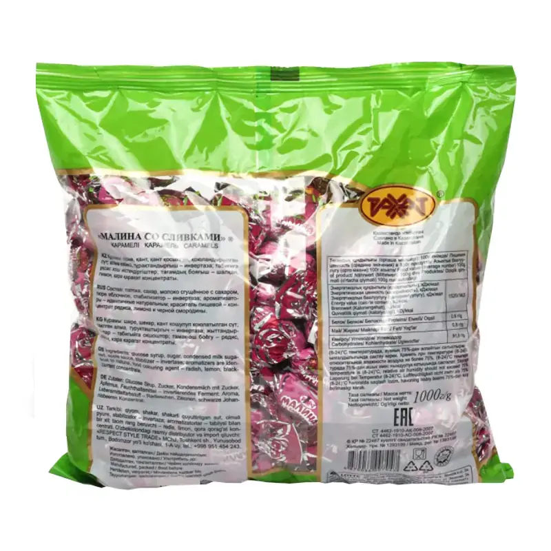 Конфеты карамель "РАХАТ" "Малина со сливками" со вкусом малины со сливками