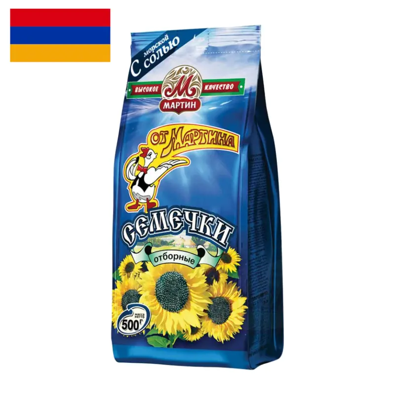 - Семечки "От Мартина" отборные жареные – вкусный продукт, которые очень популярен как среди взрослых, так и среди детей. В семенах подсолнечника содержится большой спектр веществ, необходимых организму человека. Это не только белки, жиры и углеводы, но и различные витамины. Среди них есть такие, как А (важен для зрения), B (полезен для кожи, волос, нервной системы), E (сильный антиоксидант) и некоторые другие. Также в семенах подсолнечника содержатся магний, кальций, калий, цинк, селен и ряд других макро- и микроэлементов. Незаменимые аминокислоты нормализуют жировой обмена, а ненасыщенные жирные кислоты положительно влияют на работы кровеносной и сердечно-сосудистой систем. Продукт поставляется в практичной и герметичной упаковке, которая надежно защищает содержимое от внешнего воздействия.