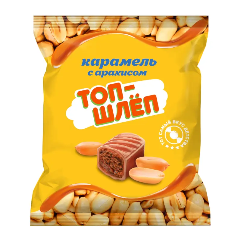 Kraukšķīga karamele "Top Šljop" ar sasmalcinātiem zemesriekstiem