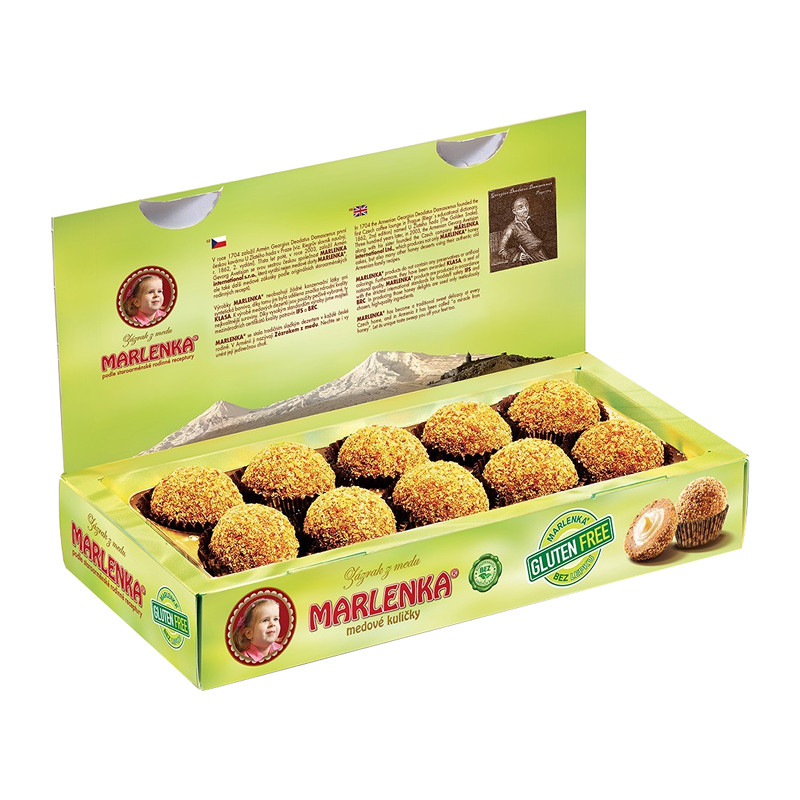 - MARLENKA® medus bumbiņas tiek izgatavotas pēc vecās Armēnijas ģimenes receptes no augstākās kvalitātes produktiem, neizmantojot konservantus vai sintētiskas krāsvielas. Par izcilu kvalitāti un ārkārtīgu izturību Čehijas Republikas Zemkopības ministrija piešķīra šim produktam nacionālo KLASA kvalitātes zīmi.