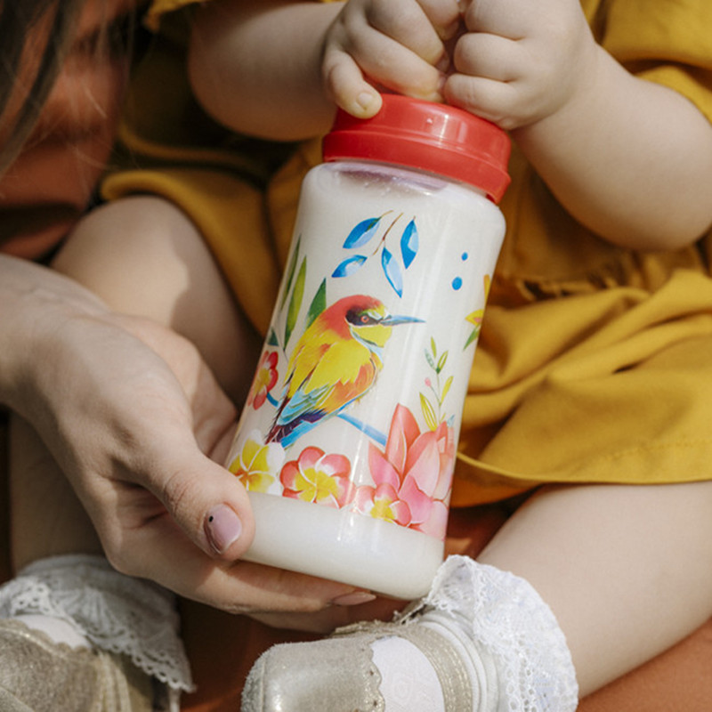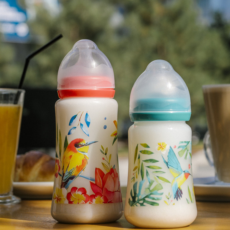 - Bērnu pudeles ar platu kaklu no izturīga polipropilēna. Nesatur BPA. Ar antikoliku silikona knupīšiem.