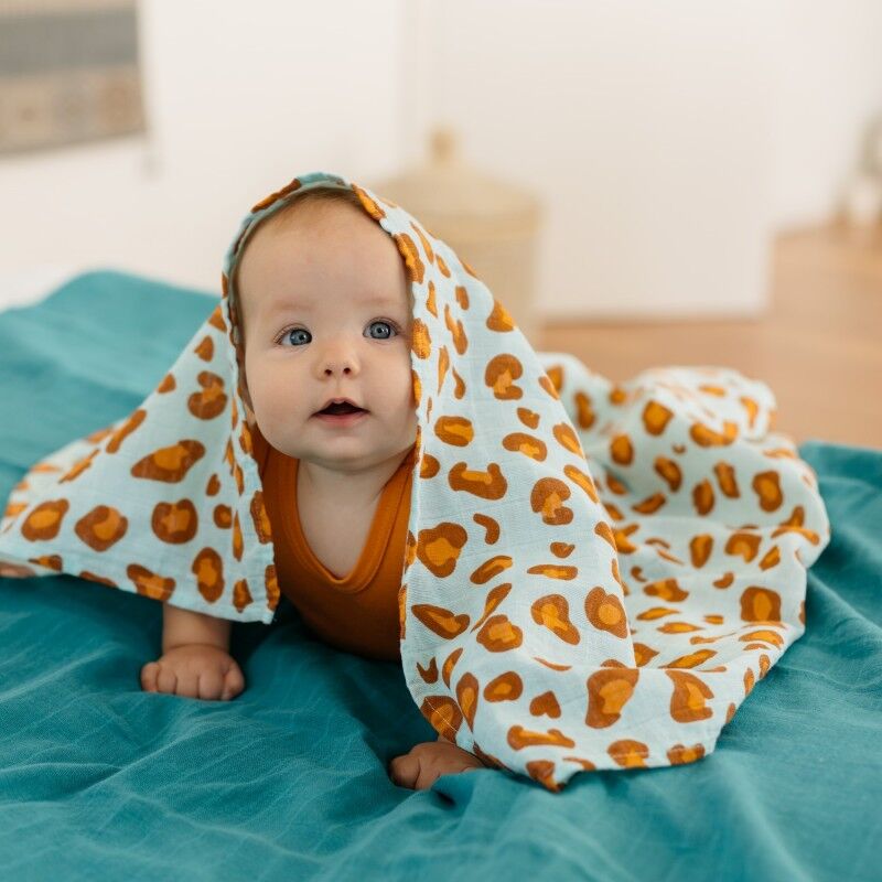 Tommy Lise kokvilnas muslīna autiņš Blue Leopard 120x120cm