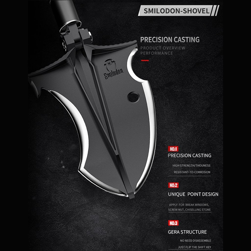 - Daudzfunkcionāla taktiskā lāpsta Smilodon Camper ar saliekamo moduļu sistēmu, pievilcīgu dizainu un plašu lietojumu klāstu ir pārsteidzošs daudzfunkcionāls rīks ar ļoti praktiskām un noderīgām funkcijām visiem piedzīvojumiem un aktivitātēm. Godalgots dizains ar lieliskām funkcijām.