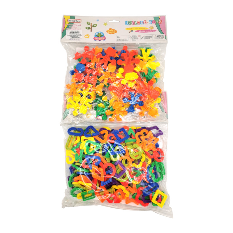 - A set of brightly colored plastic blocks, made of the highest quality plastic. Playing with building blocks builds up a child's imagination, helps to master logical thinking skills, and improves hand-eye, coordination. These bricks are specially designed for the younger age range and will help with cognitive development.