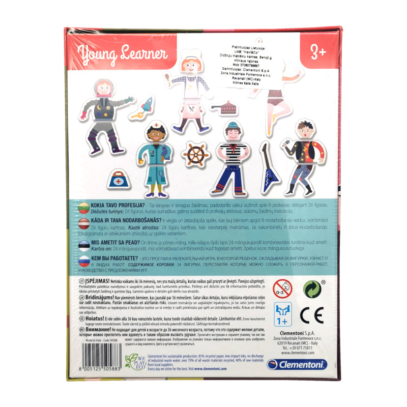 - Satur 24 kartītes, ar kurām jūs varat izveidot 6 lieliskus personāžus, no kuriem katrs pārstāv kādu profesiju. Stimulē novērošanu, loģiku, iztēli un radošumu.