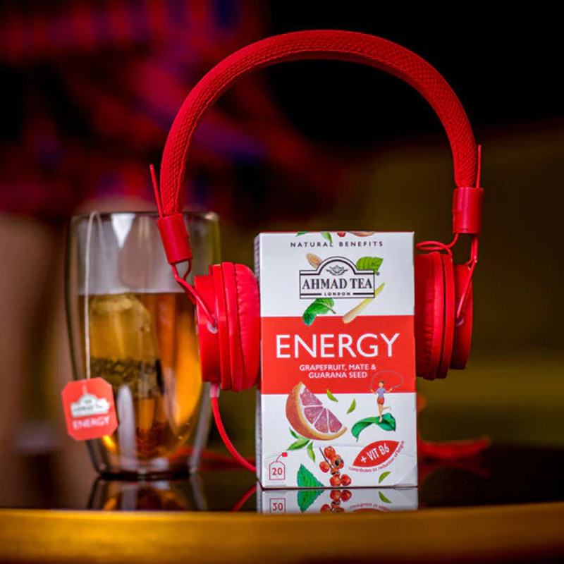 Šajā kastītē atradīsit 20 tējas maisiņus, kas ir marķēti, lai viegli pagatavotu krūzē vai katlā. Katrs tējas maisiņš ir noslēgts ar foliju, lai fiksētu tā garšu un nodrošinātu, ka katra tējas uzlējums ir tikpat svaigs kā pēdējais. Lai sāktu savu dienu ar uzviju, tase Ahmad Tea Energy uzlējuma ir ideāla izvēle. Pamostieties ar uzmundrinošo piparmētru, citrusaugļu greipfrūtu un smaržīgā citrona balzama garšu, pēc tam izbaudiet dabiski stimulējošo sastāvdaļu iedarbību.