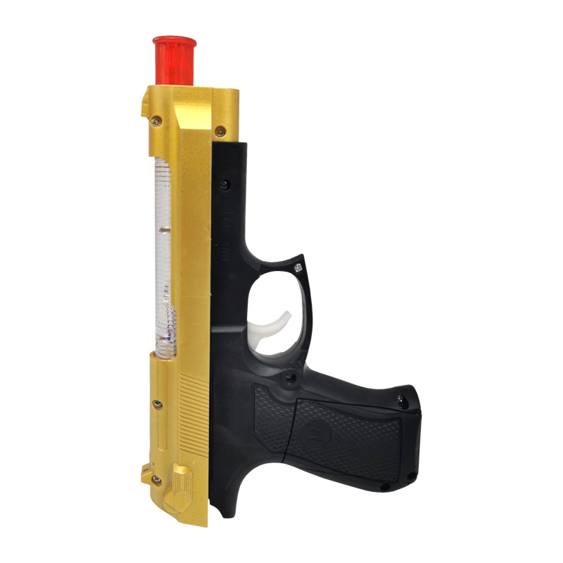 Tumšā telpā gaismas un skaņas efekti izskatās pēc iespējas iespaidīgāki. Pistole izklausās iespaidīgi, un arī tā skrūvju rāmis (pistoles augšējā daļa) ir iedarbināts.