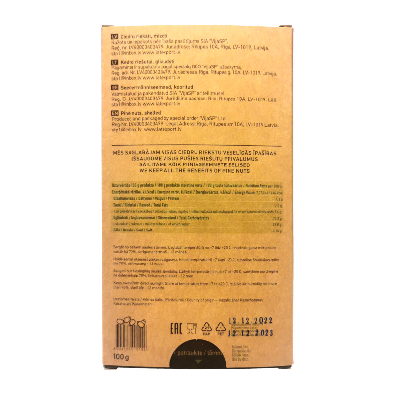 - Ražotājs: ООО «Эко-фабрика Сибирский кедр»
