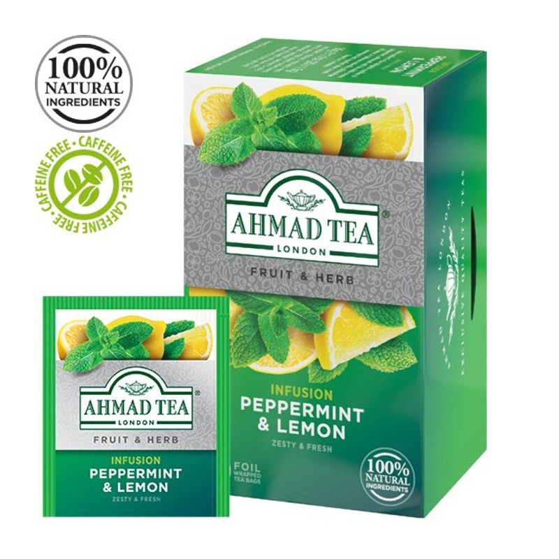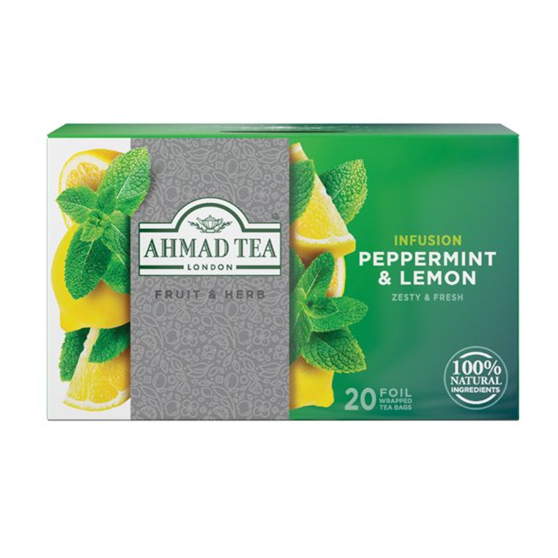 AHMAD Peppermint & Lemon, piparmētru un citronu zāļu tēja, 20 folijas maisiņi pa 1.5 g