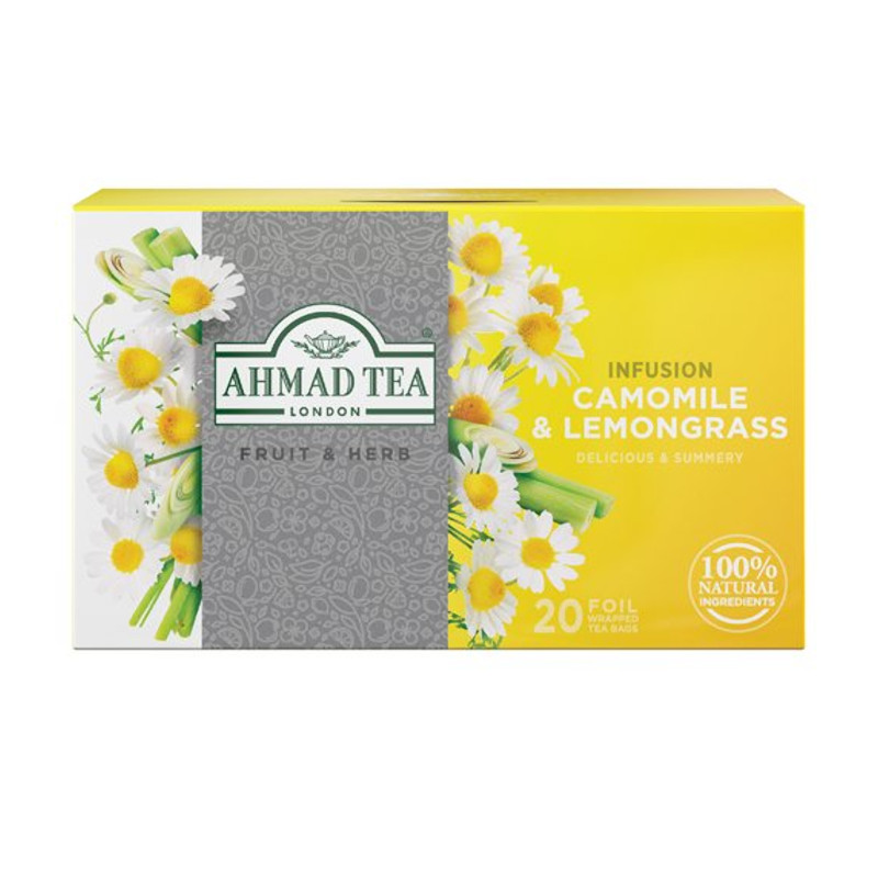 Zāļu tēja AHMAD kumelīšu lapas, citronzāle 20 maisiņi pa 2g katrā