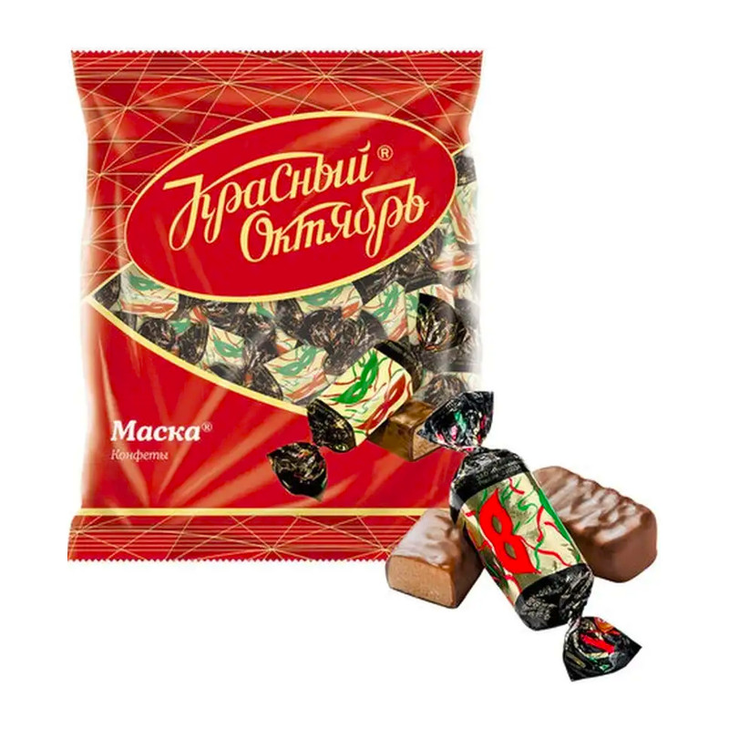 - Šokolādes konfektes "Маска" ir konfektes, kurām pievienots kakao un piena pulveris ar vaniļas garšu. Lieliski kā deserts pie tējas vai kafijas. Iepakojums: mīksts maisiņš. Garša: vaniļa, piens, šokolāde. Derīguma termiņš: 9 mēneši..