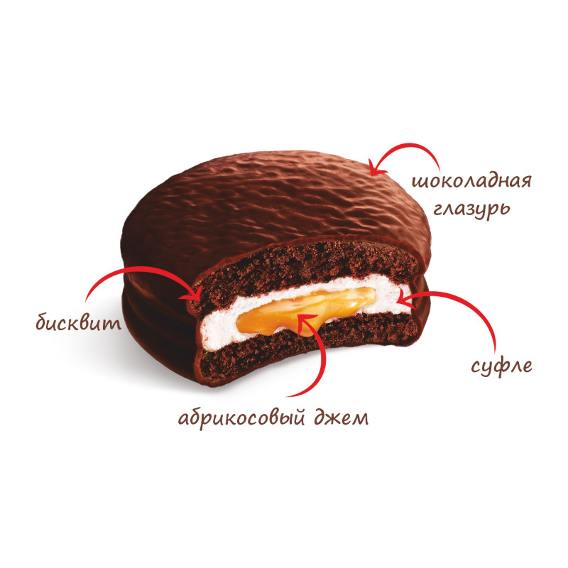 Sastāvs: cukurs; kviešu milti; dzeramais ūdens; sīrups; Aprikožu augļu pildviela; Stabilizators; biezinātāji; aromatizētāji; konditorejas izstrādājumu tauki; īpašas nozīmes tauki; pilnpiena pulveris; kakao pulveris; olu produkti; želatīns; sāls; kakao masa; piena proteīns; citrusaugļu diētiskās šķiedras; Konservanti; audzināšanas aģenti