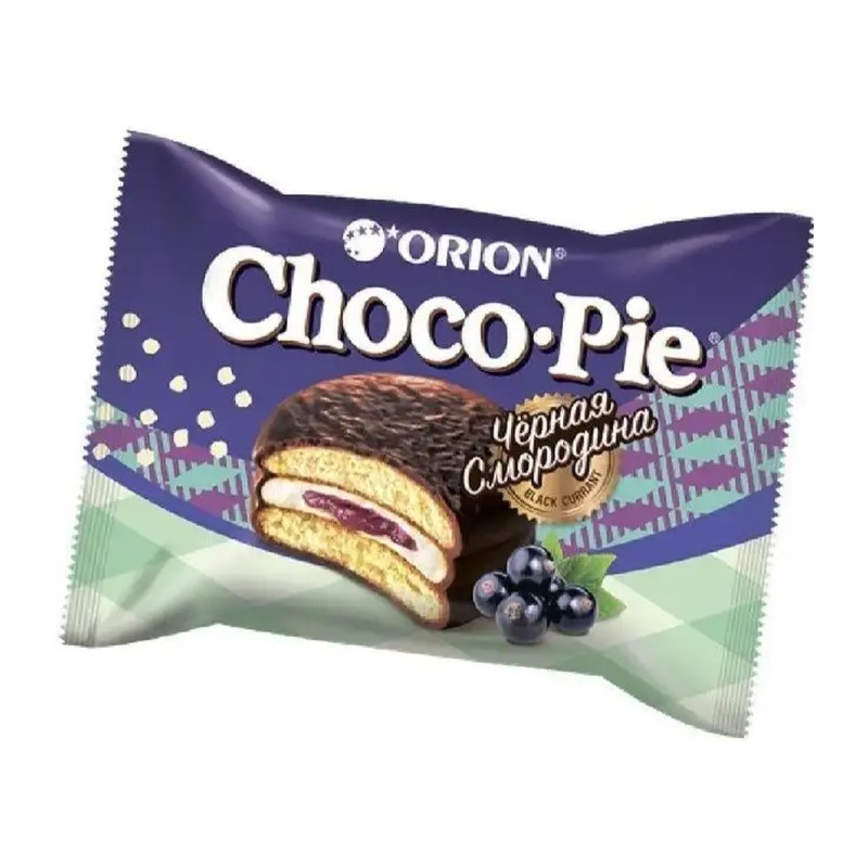 Biskvīts "Orion Choco Pie" "Melnā jāņoga" ar melno jāņogu pildījumu