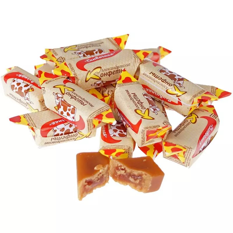 - Bērnības iemīļota konfekte ar mīkstu, krējuma, staipīgu centru, ražota, pilnībā ievērojot augstākos GOST standartus pēc klasiskās tehnoloģijas no atlasīta iebiezinātā piena, pievienojot krējumu.
