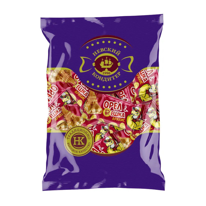 Neglazētas griljāžas konfektes "Орел и Решка" "Невский кондитер" karamele ar zemesriekstiem