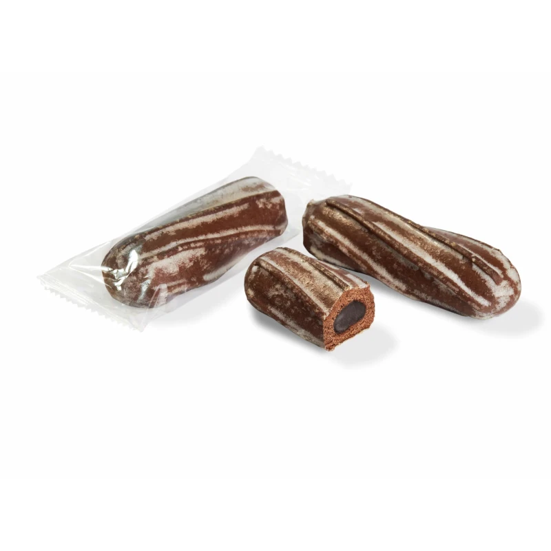 - Mīkstas olu krēma šokolādes prjaņiki, eklēra formā, ar dabīgā kakao un krēmveida šokolādes pildījumu, pārklātas ar vissmalkāko cukura glazūru. Katra piparkūka ir individuāli iepakota, kas ļauj tai ilgstoši palikt mīkstai un smaržīgai.