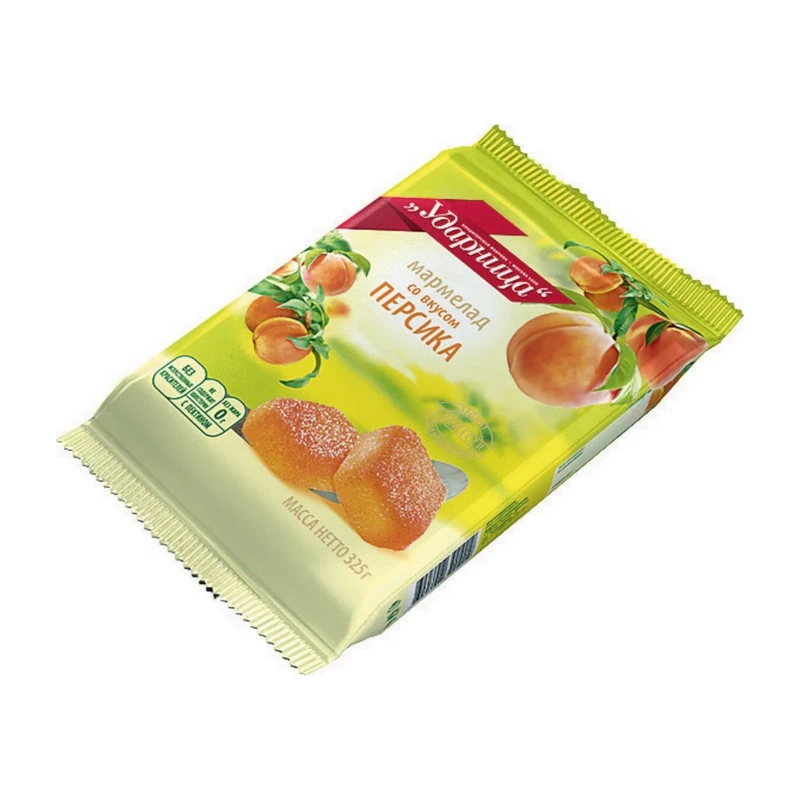 Sastāvs: cukurs, melase, želejviela - pektīns, skābuma regulētāji - pienskābe, ābolskābe, citronskābe, kālija citrāts, persiku aromatizētājs, dabīgā krāsviela - paprikas ekstrakts