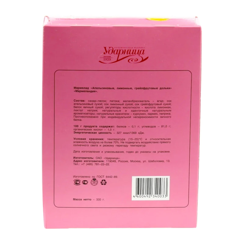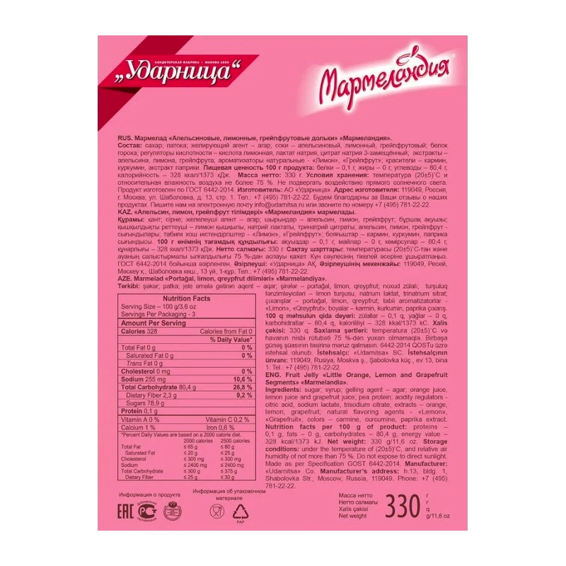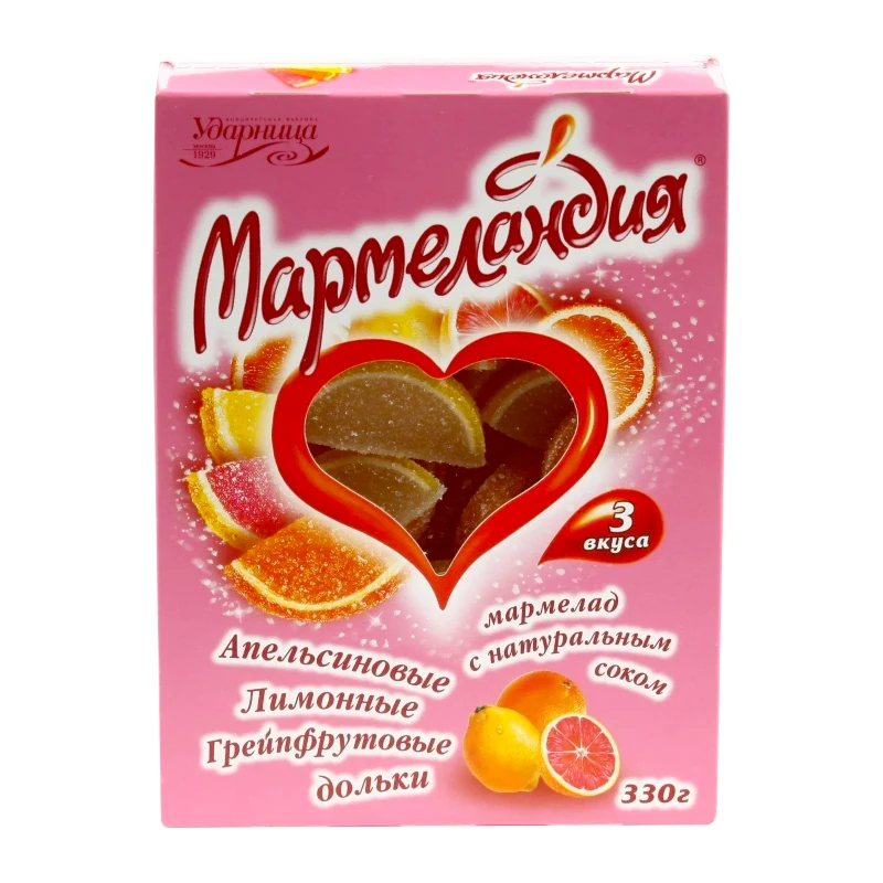 Marmelāde "Мармеландия" apelsīnu, citronu, greipfrūta šķēles