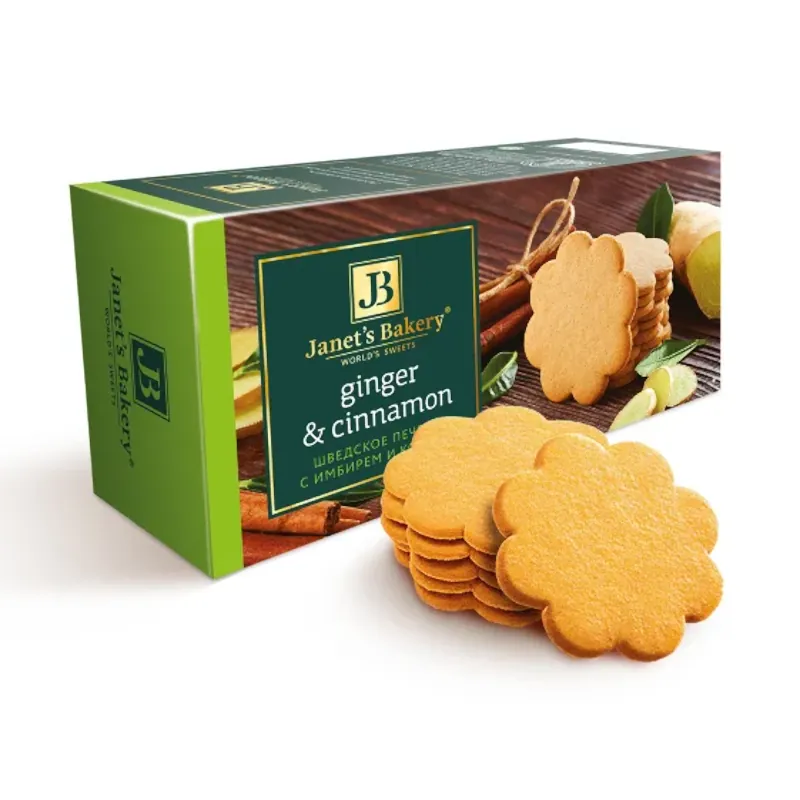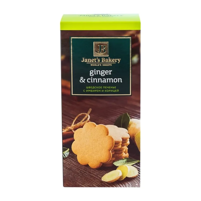 - Plānie cepumi ar kanēli un ingveru pēc unikālas receptes ar pievienotām garšvielām. Brīnišķīga Zviedrija jūsu mājās! "Janet's Bakery" līnija satur labākās receptes no visas pasaules, lai pie tējas tases izbaudītu izsmalcinātas gastronomiskas garšas.