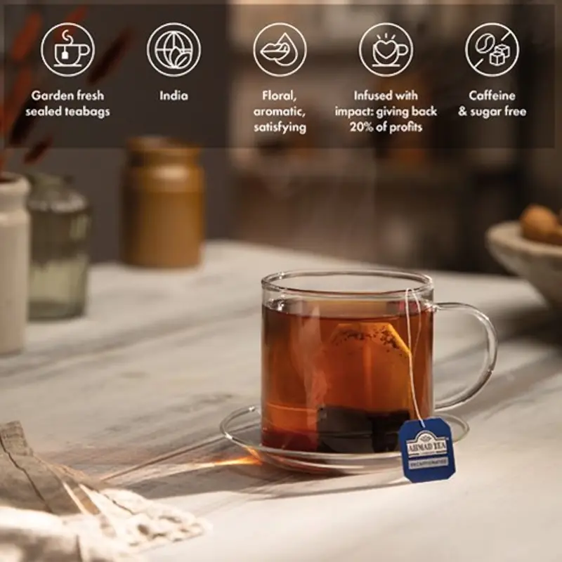 Ahmad Tea vienmēr ir inovāciju priekšgalā, un jaunā bezkofeīna tējas kolekcija iepriecinās ikvienu, kurš vēlas baudīt klasisko tējas garšu bez kofeīna. Šī jaunā tējas kolekcija kliedē mītu, ka bezkofeīna tējas garšo sliktāk, un piedāvā pilnu mūsu sarežģīto garšu klāstu, kas tagad ir pieejams ikvienam. Ja vēlaties baudīt tēju jebkurā diennakts laikā, nezaudējot garšas kvalitāti, tad laipni lūdzam iepazīties ar jaunajām Ahmad Tea bezkofeīna tējām.