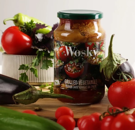 Sastāvdaļas: baklažāni; tomāti; zaļie paprika; galda sāls.