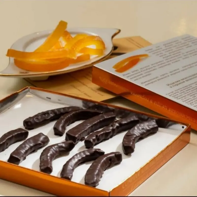 - Palutiniet sevi ar saules staru ar mūsu sukādes apelsīna miziņām 72% tumšajā šokolādē. Sulīgas apelsīna miziņas, kas pārklātas ar plānu tumšās šokolādes kārtu, rada satriecošu garšu kombināciju, kas iepriecinās citrusaugļu cienītājus un smalkas šokolādes pazinējus. Šīs sukādes miziņas ir brīnišķīgs papildinājums aromātiskai tējai vai kafijai, vai arī brīnišķīgs deserts jebkuram svētku galdam. Iepakojums ir lieliski piemērots dāvināšanai vai sevis palutināšanai.