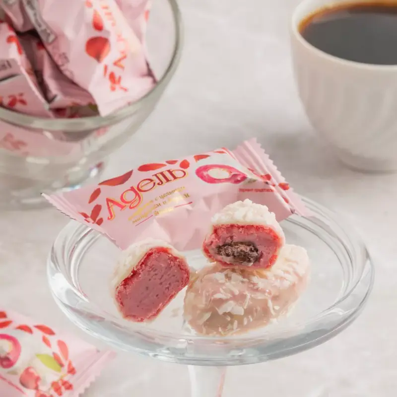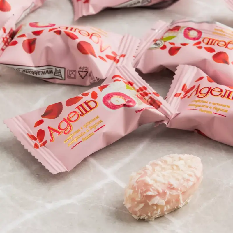 - Adele chocolate gift candies are exquisite candies in a crispy wafer shell with a delicate creamy filling and whole nuts, whole almonds, and cherries, coated in white chocolate and sprinkled with coconut flakes. Experience a feeling of lightness and tenderness. Create a festive mood for yourself and your loved ones every day! Perfect for those who love Raffaello candies!