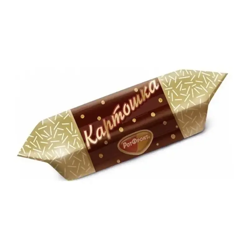 - Šokolādes konfektes "Рот Фронт" “Kartupelis” ar kakao garšu pralinē un mīkstajiem cepumu gabaliņiem ir iecienīts konfektes lieluma našķis. Biezs, nedaudz lipīgs pildījums ar cepumu gabaliņiem un bagātīgu šokolādes garšu, pārklāts ar smaržīgu šokolādes glazūru. Kakao un cepumu spilgtais saldums, mīkstā, kūstošā tekstūra un konfektes lieluma izmērs rada maigu, kumosa lieluma našķi.