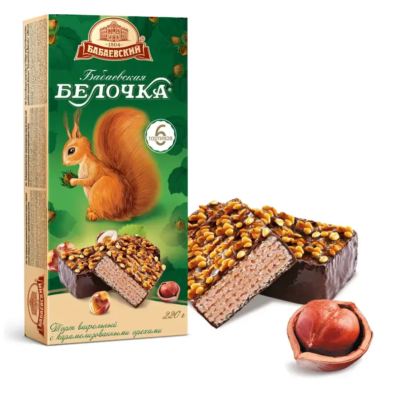 "Бабаевская Белочка" "Babaevskaja Vāverīte" vafeļu torte ar riekstiem dāvanu kastītē
