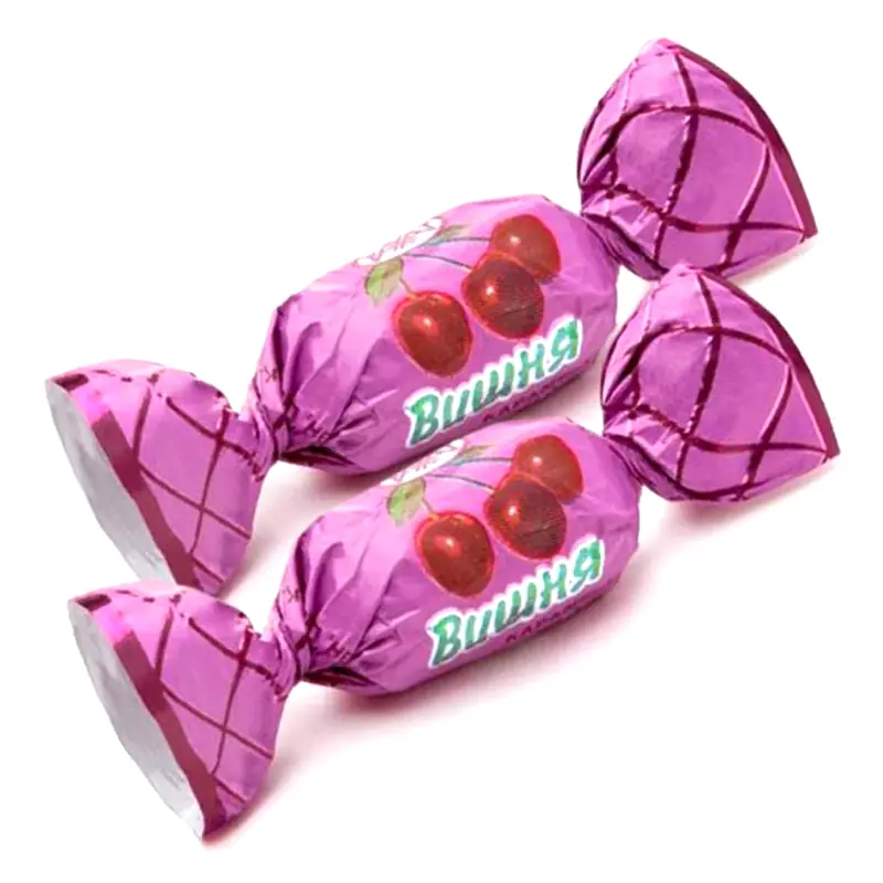 - Karameļu konfektes ar nogatavojušos ķiršu garšu.